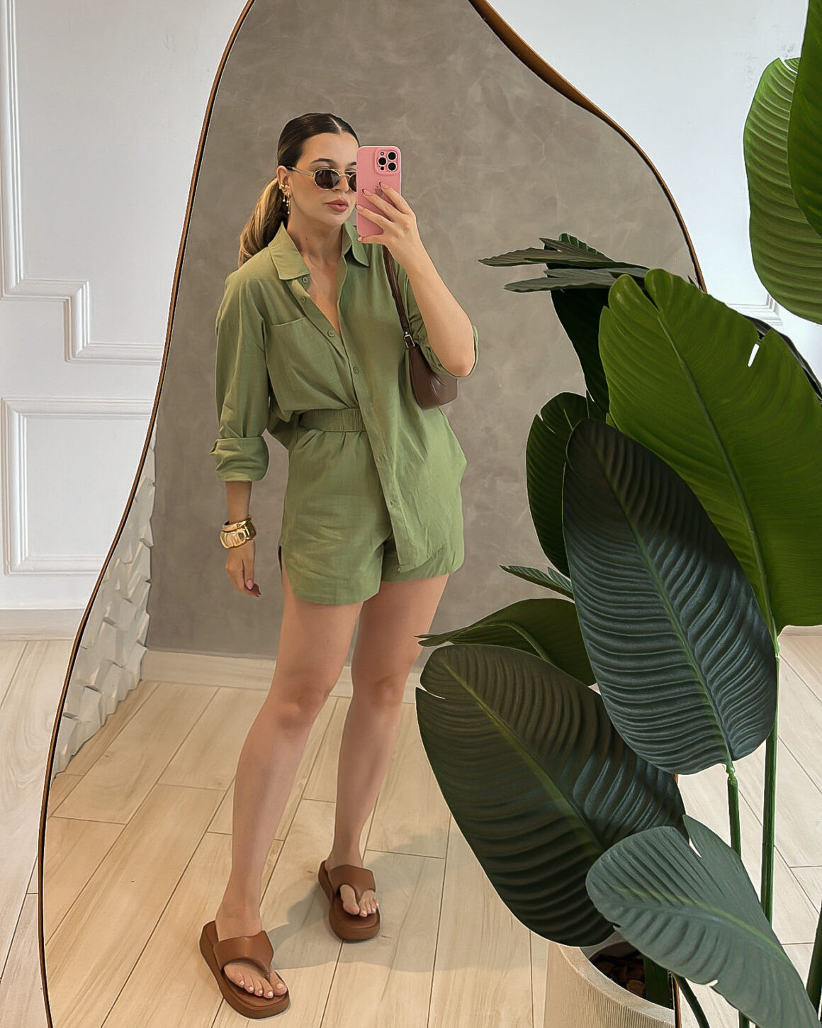 • Conjunto composto por short e camisa em tecido leve