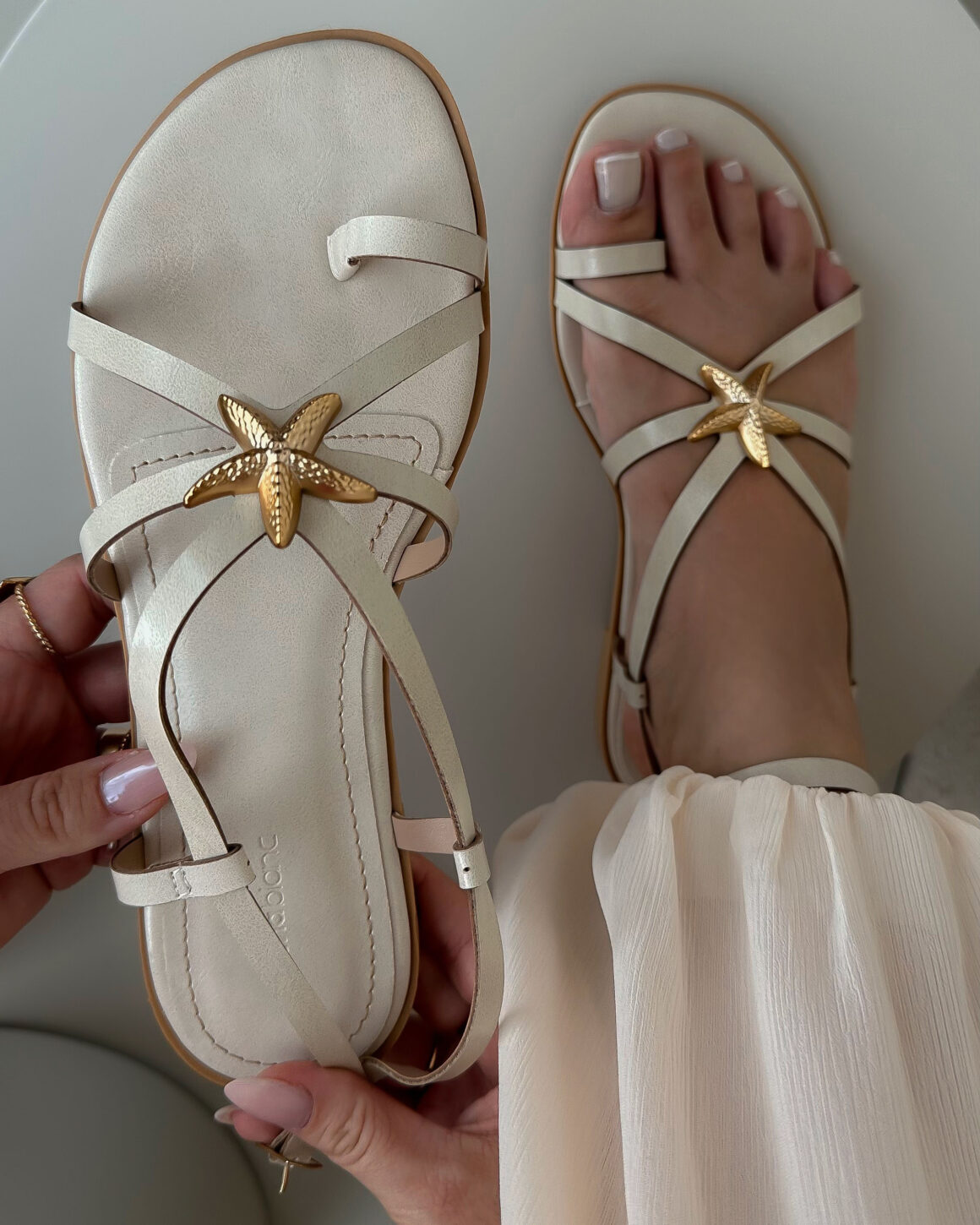 - Tiras finas cruzadas para melhor ajuste