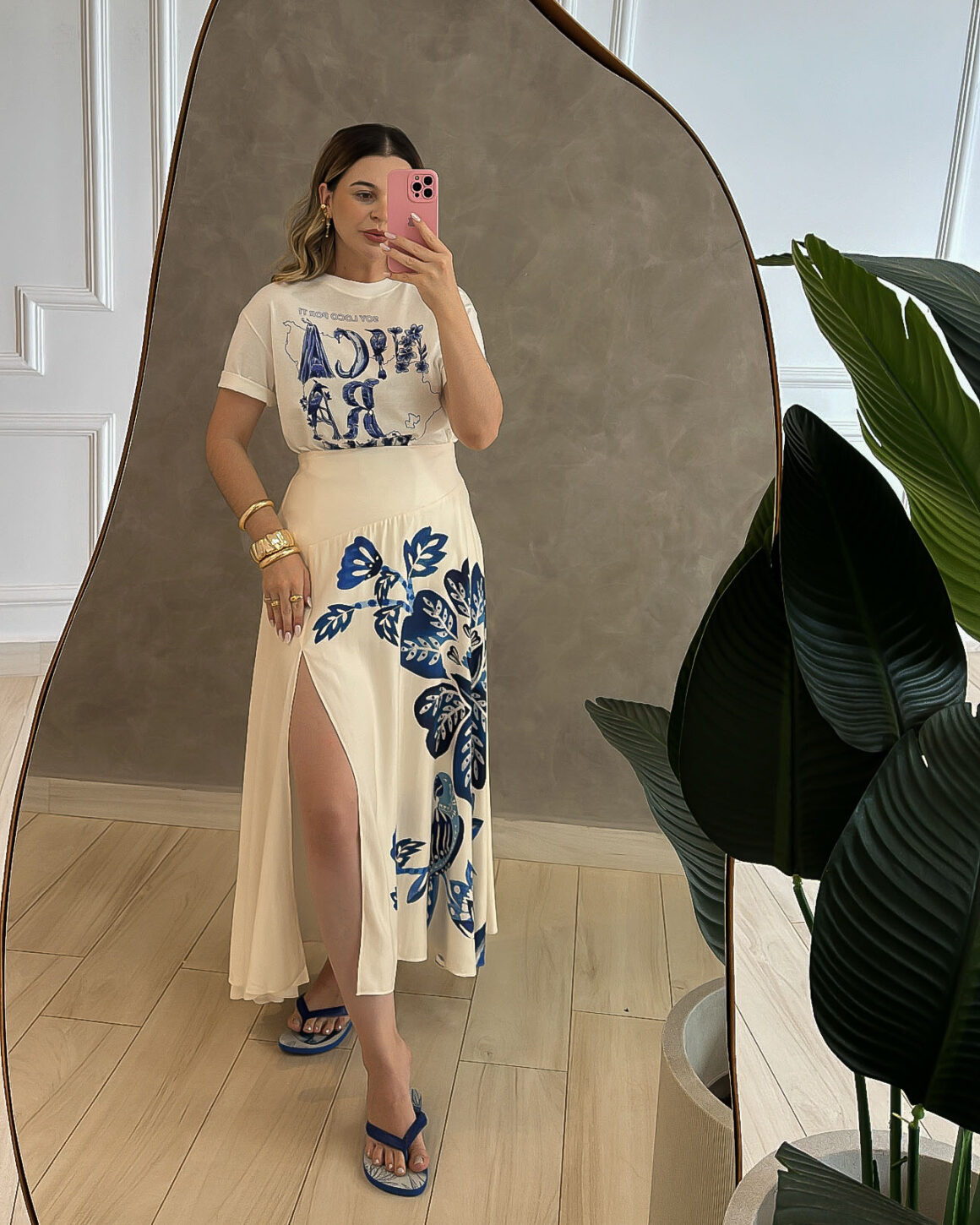 • Saia mídi com tecido leve e fluido, com excelente caimento e conforto ao vestir